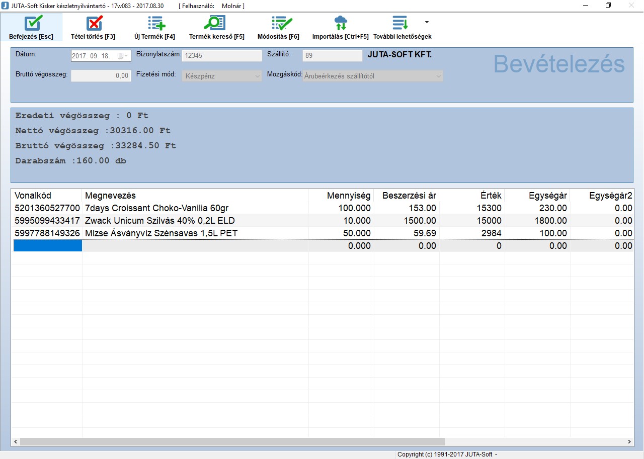 | Bevételezés | |||